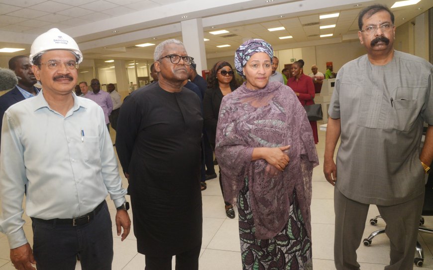 DSC_1818: L-R: President/CE, Dangote Industries Limited, Aliko Dangote; Deputy Secretary-General of the United Nations, Amina Mohammed; during her visit to Dangote Fertiliser Limited, Lekki Lagos on Monday, April 6, 2026